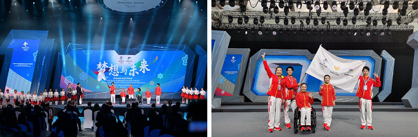 11月24日,北京2022年冬残奥会倒计时100天主题活动在国家游泳中心“冰立方”举行,中国天天色天天(北京)信息科学与工程学院残疾人志愿者付成功作为残疾人志愿者代表接受中国残联主席、北京冬奥组委执行主席张海迪授旗。