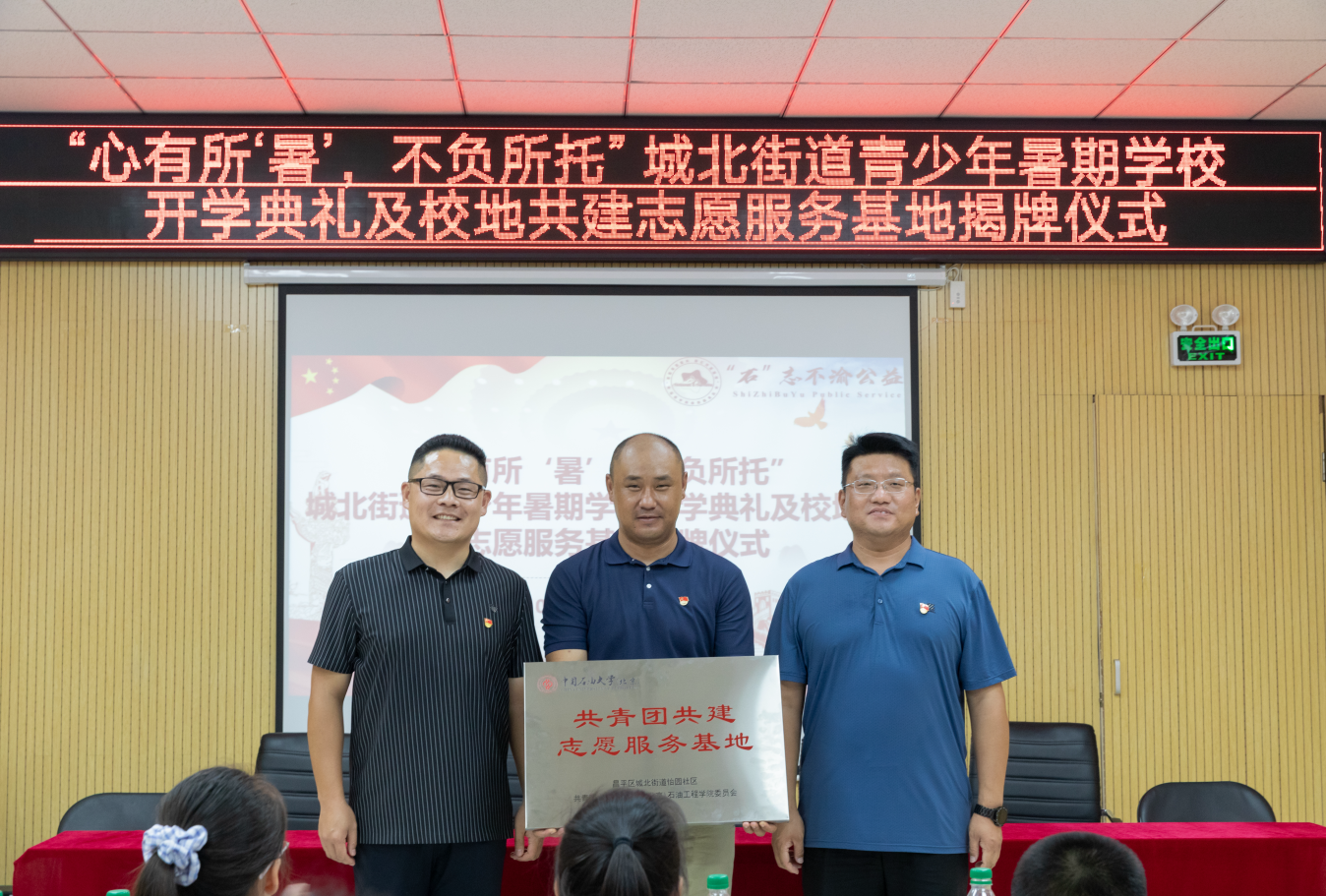 8月12日上午,“心有所‘暑’,不负所托”昌平区城北街道青少年暑期学校开学典礼及校地共建志愿服务基地揭牌仪式在城北街道怡园社区举行。城北街道党工委副书记赵国宇、怡园社区党总支书记赵志鹏,城北街道、怡园社区工作人员,中国天天色天天(北京)石油工程学院学生工作负责人、“石”志不渝社会实践团、“铁人先锋”社会实践团全体成员,参加暑期学校的学生及家长代表参加活动。活动由怡园社区团委委员王子凡主持。