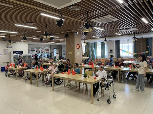 实践团协助颐康中心共同举办八一建军节茶话会,一位退休老兵嗓音沧桑却字字仍铿锵,为大家分享回忆的同时,也对年轻一代秉承爱国精神、助力国家发展寄予厚望。活动中,实践团成员发挥英语专业特色,为老人们献唱英文版《歌唱祖国》,通过昂扬向上的歌声向银发世代展现了青年人热爱祖国,愿意投身于建设祖国的赤子之心。实践团协助开展了“经典红歌永流传”活动,实力“唱将”们轮番上场,在歌声中释放喜悦自豪、追忆激情岁月,表达着对革命精神的敬仰和对美好生活的感念。