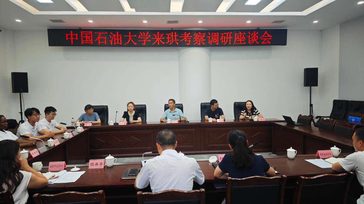 7月8日,实践团成员、带队教师等与珙县县委组织部常务副部长、县委人才办副主任熊兴强,珙县团委书记李学、县经开区管委会副主任刘红、县农业农村局副局长吴开平、县教师发展中心副主任孙希敏,围绕当地“教育、经济、企业发展及人才培养”等方面进行研讨,就共建地球科学科普教育基地暨大学生实习实践基地达成一致意见。