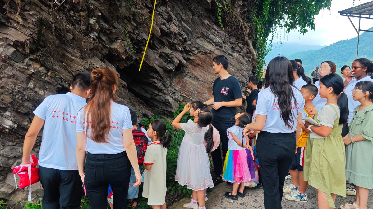仪式结束后,中石大教授团队和实践团成员带领孩子们开展了野外地质研学,让大家进一步了解了家乡的地质构造现象和能源资源情况。