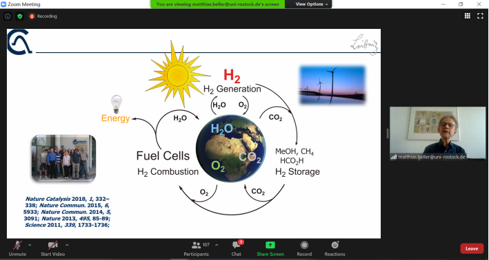 Professor Martin freer, Professor Steve Griffiths, vice president of Khalifa University, UAE, Professor Matthias Beller, University of Rostock, Vice President of the Leibniz Society, Germany, Professor Suzana Yusup,Director of Centre for Biofuel & Biochemical Research, Universiti Teknologi Petronas, Professor Evgeny solomin, Head of the “Alternative Energy” International Research Group, South Ural State University, Russia, Dr. Ahmad El kharouf from the Birmingham Centre for Fuel Cell and Hydrogen Research, University of Birmingham, UK, and Professor Du Xiaoze, Dean for the School of Energy, Power and Mechanical Engineering, North China Electric Power University, made keynote speeches successively. Their presentations covered different aspects related to hydrogen, such as the opportunities and challenges for hydrogen, the application of hydrogen for industrial decarbonisation, the importance of catalysts for hydrogen storage systems, the bio-hydrogen production and carbon-Based materials as super-capacitor for energy storage device, the hydrogen powered renewable power plan, hydrogen-based fuels, and the hydrogen pathway in China. At the webinar, the attendees and speakers had very positive interaction, which provided a good opportunity for further international cooperation of hydrogen.
