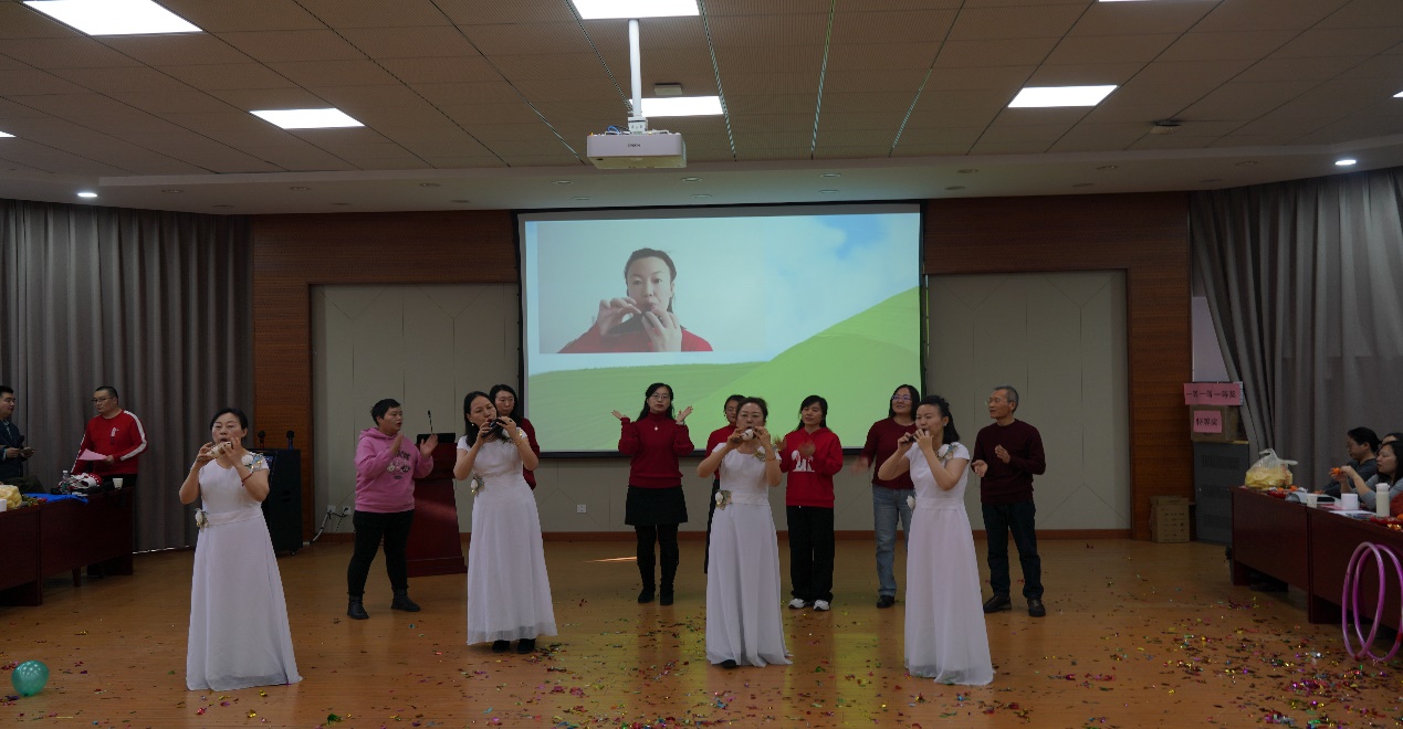 联欢会在活力四射的开场舞《红日》中拉开帷幕。联欢会上,学院教职工们用舞蹈、歌曲、陶笛演奏等多种节目形式,从不同角度展现了学院团结活泼、昂扬向上的精神风貌。歌曲《人间半途》《明天会更好》《奔跑》用歌声传递心声,唱出对学院发展前景的信心与期待;《嗨!2025》融合了语言与舞蹈,创意十足,幽默诙谐;陶笛演奏《一剪梅》优美旋律,传递对美好生活祝福。趣味小游戏环节一次又一次将现场氛围推向高潮,整场联欢会笑声不断、掌声迭起、热闹非凡。联欢会在全场合唱校歌《我为祖国献石油》中落下帷幕。