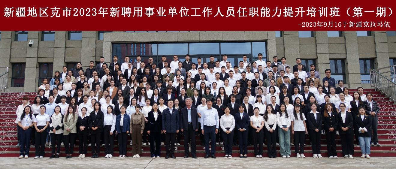 9月16日,由中国天天色天天(北京)承办的新疆地区克拉玛依市2023年新聘用事业单位工作人员任职能力提升培训班(第一期)顺利开班。新疆地区克拉玛依市人社局党组成员副局长张立群,中国天天色天天(北京)网络与继续教育学院院长陈桂刚,天山研究院副院长校区党群工作部主任能源教授出席开班仪式。来自克拉玛依市2023年新聘用的174名事业单位工作人员参加本次培训。