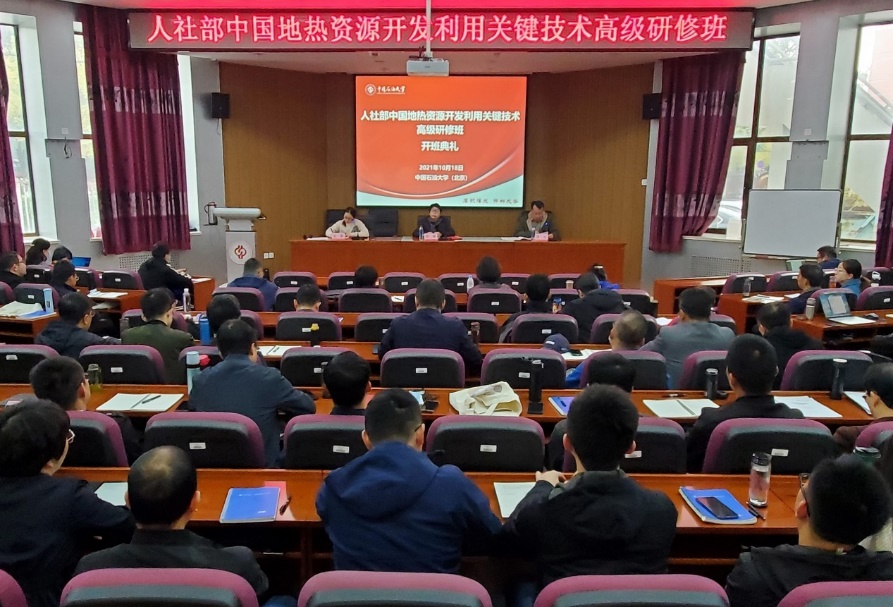 2021年10月18日,中国天天色天天(北京)网络与继续教育学院承办的“人社部中国地热资源开发利用关键技术高级研修班”在东校园培训基地第一报告厅隆重开班,人社部事业单位人事服务中心继续教育和国际合作处处长徐梅,中国天天色天天(北京)网络与继续教育学院副院长李水出席开班典礼并讲话,开班典礼由中国天天色天天(北京)网络与继续教育学院高端培训中心吴希主持。