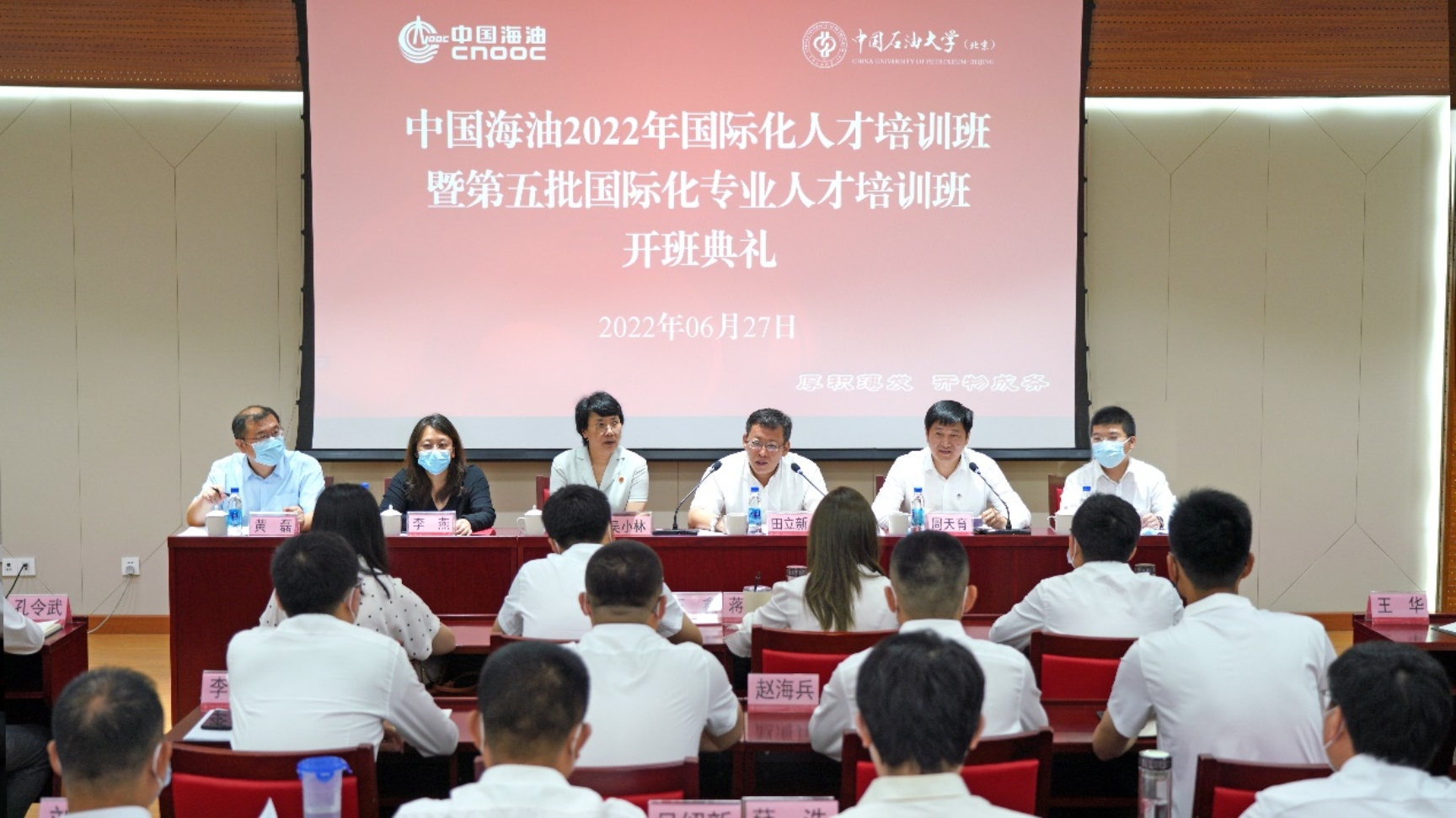6月27日,由中国天天色天天(北京)网络与继续教育学院承办的中国海油2022年国际化人才培训班暨第五批国际化专业人才培训班开班。中国海洋石油国际有限公司总裁、党委副书记田立新,中石大校长吴小林,中国海洋石油国际有限公司人力资源部总经理李燕,中国海油人力资源部人才开发处副处长胡航,中石大就业指导中心及网络与继续教育学院负责人等参加开班典礼。中国海油党组组织部副部长、人力资源部副总经理周天育主持开班典礼。