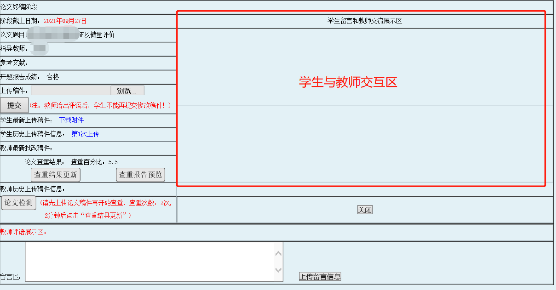 4.如在论文写作过程中遇到与专业内容相关的问题,请在交互区跟指导教师留言讨论。