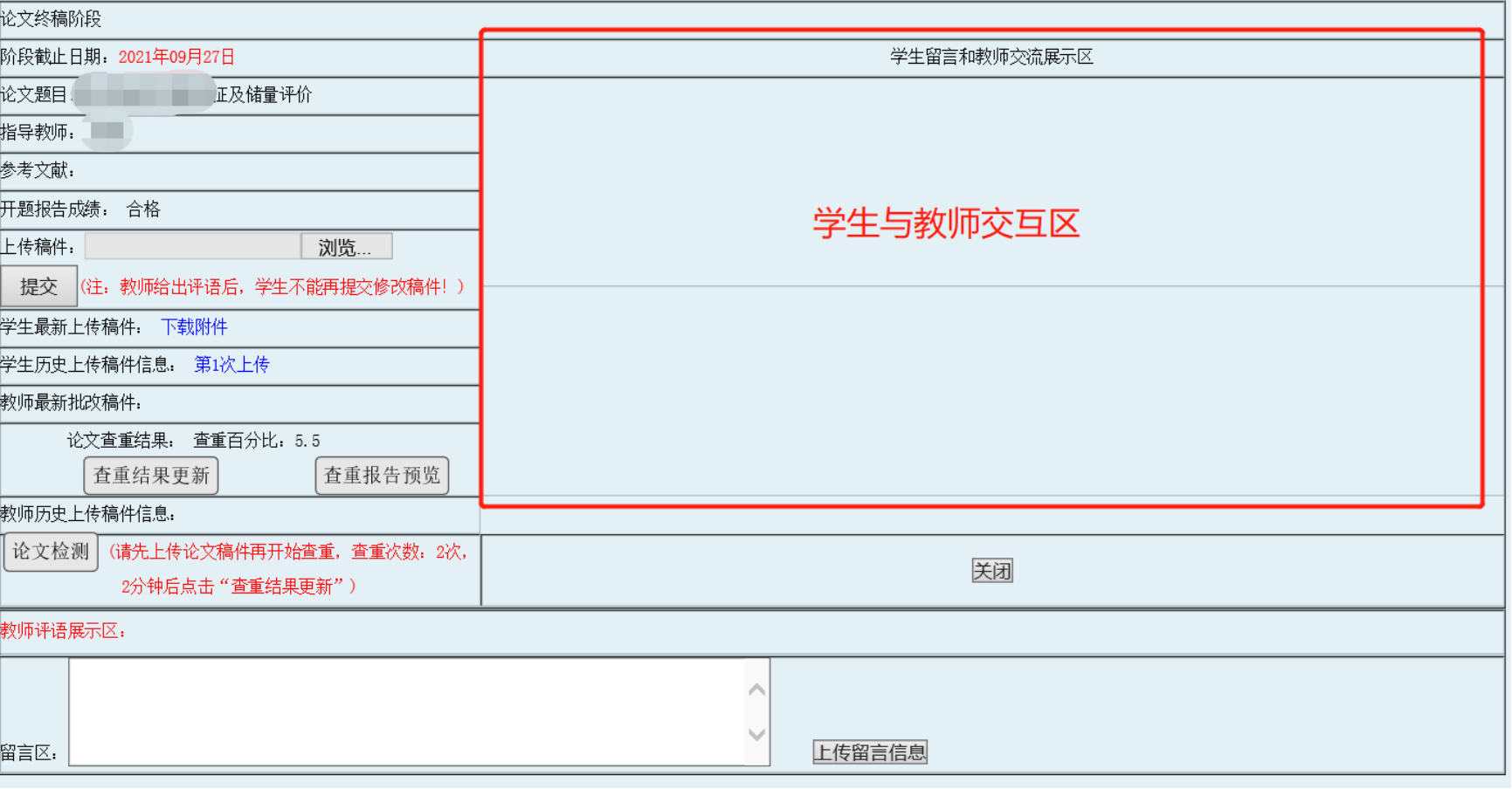 4.如在论文写作过程中遇到与专业内容相关的问题,请在交互区跟指导教师留言讨论。