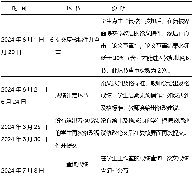 4. 按照学院相关规定,复核论文的最高成绩是及格,参加论文复核的学生不能申请答辩。