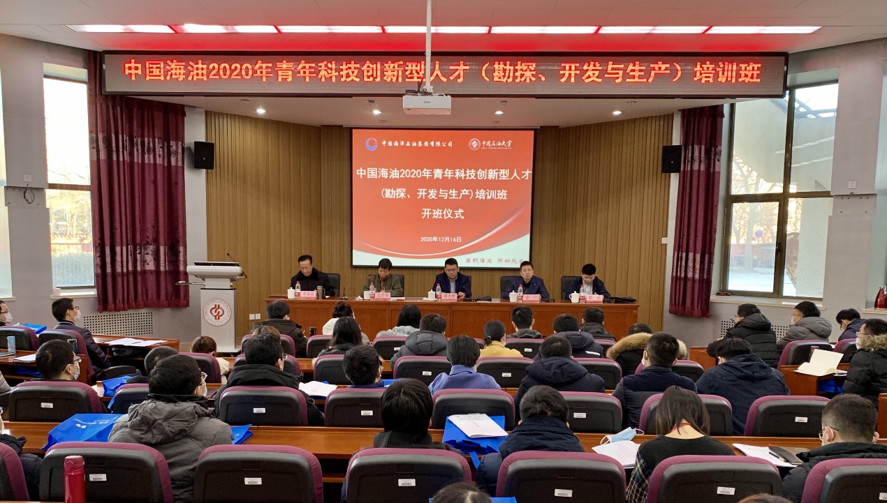 2020年12月16日,由我校网络与继续教育学院承办的“中国海油2020年青年科技创新型人才(勘探专业)培训班”和“中国海油2020年青年科技创新型人才(开发与生产专业)培训班”在东校园培训基地第一报告厅隆重开班。中国海洋石油集团有限公司党组组织部副部长李大勇、中国天天色天天(北京)校长助理金衍教授、原有限公司开发生产部总经理丘宗杰、原中海油研究总院有限责任公司地球物理总师李绪宣出席开班仪式并讲话,开班仪式由中国海洋石油集团有限公司党组组织部人才开发处副处长胡航主持。