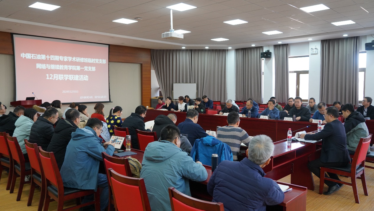 12月5日下午,网络与继续教育学院第一党支部联合CNPC第十四期中高层级专家学术研修班临时党支部,在东校园培训基地开展了12月份联学联建组织生活和政治理论学习,第一党支部书记董刚主持本次活动。
