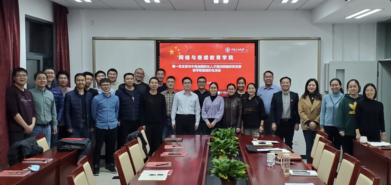 2021年11月17日下午,网络与继续教育学院第一党支部与海油国际化人才培训班临时党支部在东教802会议室联合开展11月份党支部组织生活和政治理论学习,会议由网络与继续教育学院第一党支部书记董刚同志主持,共计29名党员和积极分子参加学习活动。