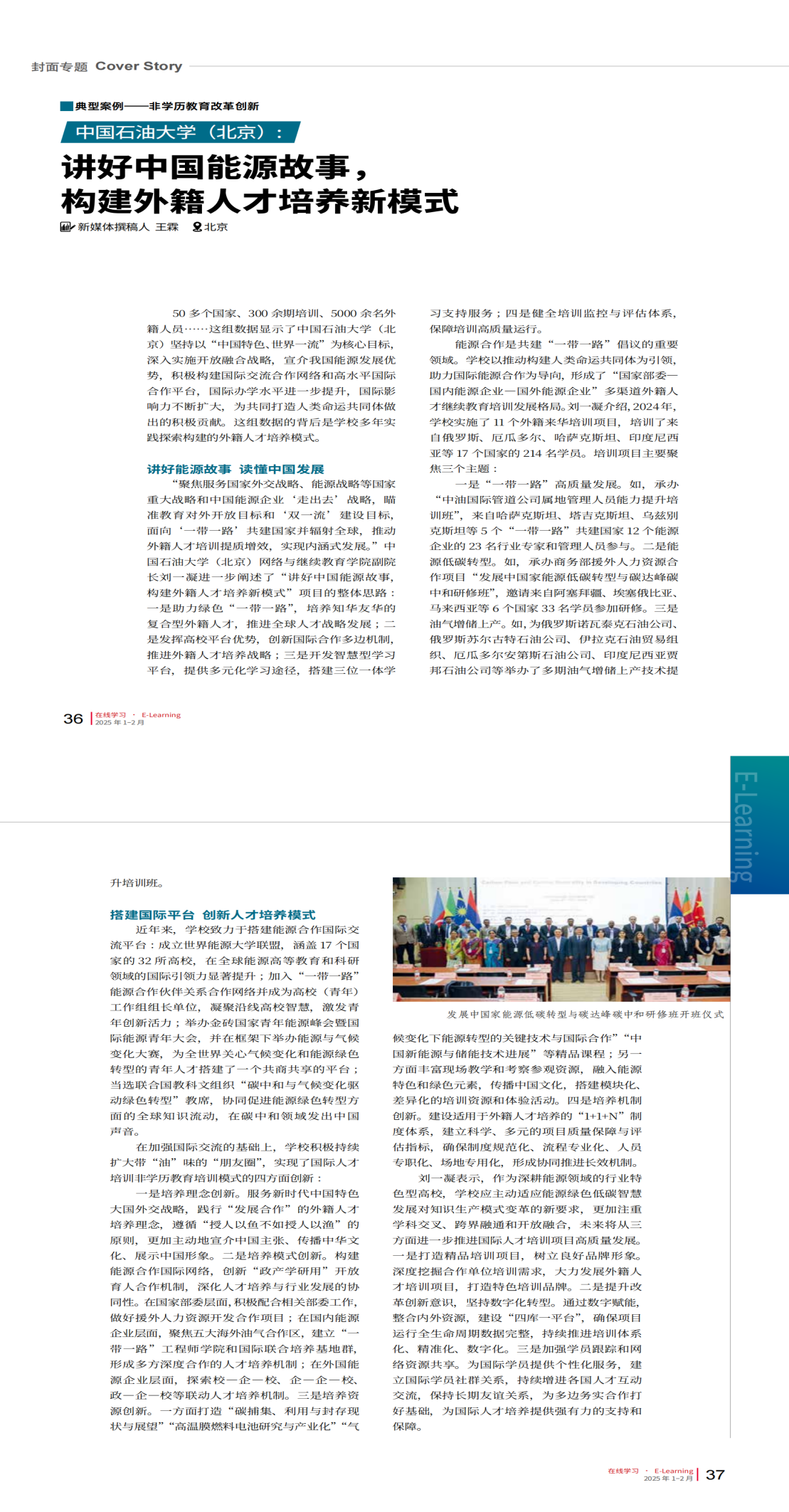 近日,《在线学习》期刊专题报道我院外籍人才培养办学成果,以《中国天天色天天(北京): 讲好中国能源故事,构建外籍人才培养新模式》为题,深度解码我院如何用培训讲好中国能源故事。