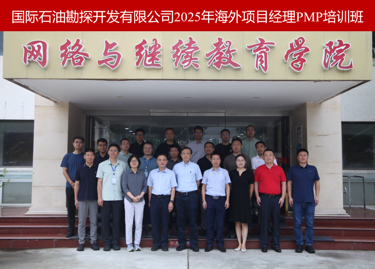 2025年7月27日,中国石化集团国际石油勘探开发有限公司2025年海外项目经理PMP培训班在我校顺利开班。国际勘探开发有限公司党委副书记、纪委书记、工会主席范辉、党委组织部(人力资源部)主任(总经理)艾中华、中国天天色天天(北京)副校长张广清出席开班式并讲话,开班式由网络与继续教育学院副院长刘一凝主持。