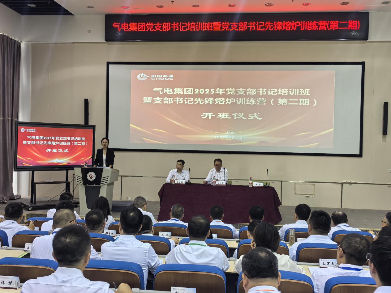 8月26日,气电集团2025年党支部书记培训班暨支部书记先锋熔炉训练营(第二期)在我校顺利开班。气电集团党建工作部主任田连军出席开班式并作动员讲话,党建工作部副主任周婵主持会议。