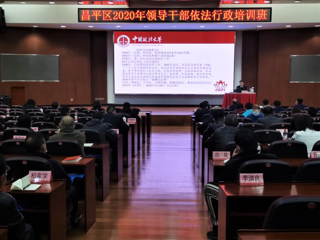 此次培训班从10月20日开始,于10月22日结束,共有来自区政府各委、办、局,各镇政府、街道办事处主管领导及相关负责人,共约120名。此次培训班是昌平区委组织部、区司法局继第一期昌平区2020年领导干部依法行政培训班之后第二次合作举办,该项目的顺利举办,将进一步加深我校与地方政府间的交流与合作。