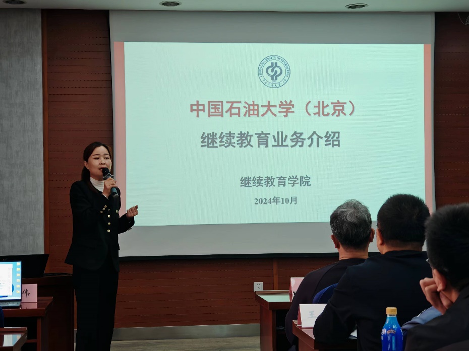 在正式开班之前,网络与继续教育学院高层次人才发展中心副主任张敏向各位学员介绍了中国石油发学的发展历程以及近些年学校取得的成就,着重展示了网络与继续教育学院的开展的各类精品培训项目。