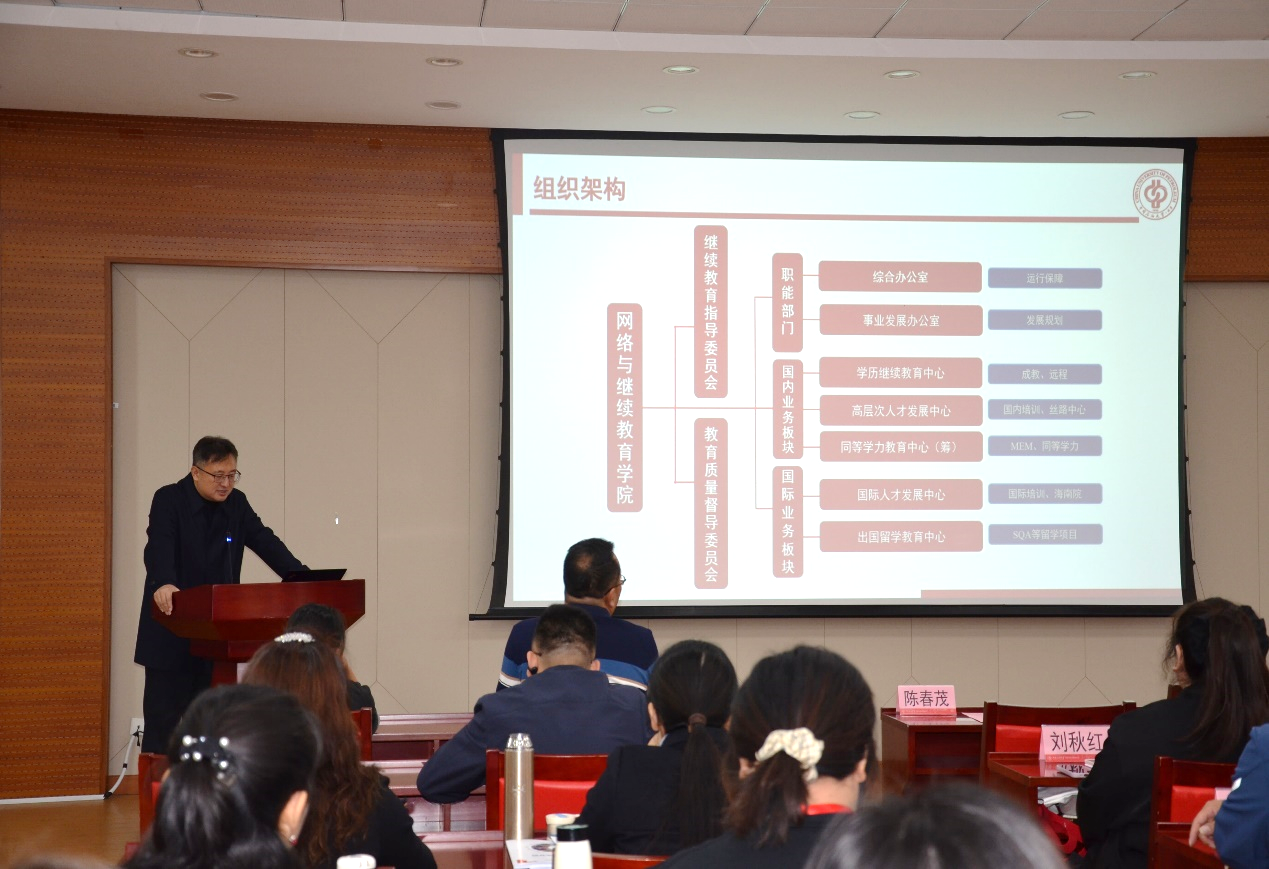 院长陈春茂向参会人员表示热烈的欢迎,并作“服务能源战略、规范教育教学,共同推动学历继续教育高质量发展”的报告,希望各校外教学点能够与学院同心协力、同向而行,在继续教育领域合作共赢,为谱写国家能源战略新篇章作出更大贡献!