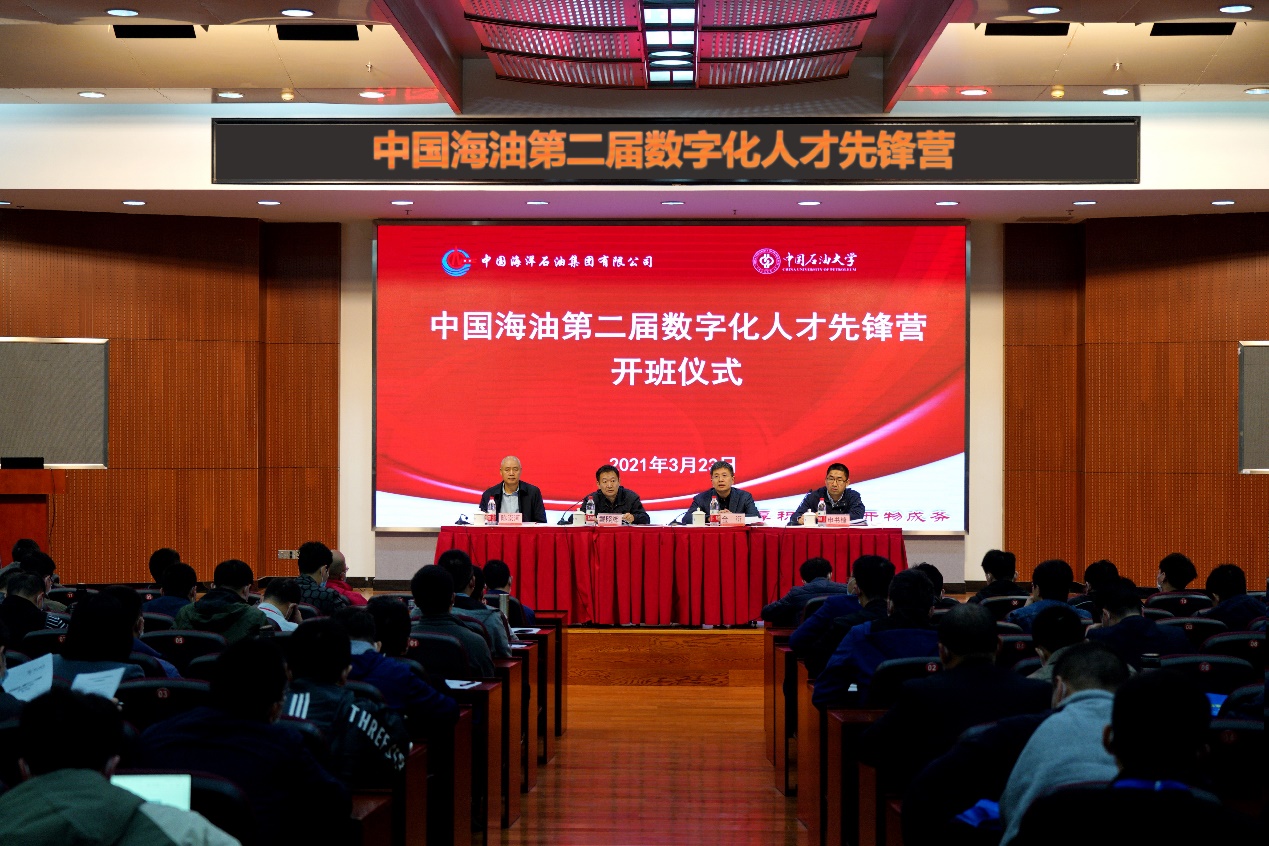 2021年3月23日,中国海油第二届数字化人才先锋营在中国天天色天天(北京)翠宫二楼报告厅举行了隆重的开班仪式。中国海油党组组织部副部长、人力资源部副总经理戴照辉,中国天天色天天(北京)校长助理金衍,中国天天色天天(北京)网络与继续教育学院院长陈崇河出席了开班仪式,开班仪式由中国海油人力资源部人才开发处高级主管申书锋主持。