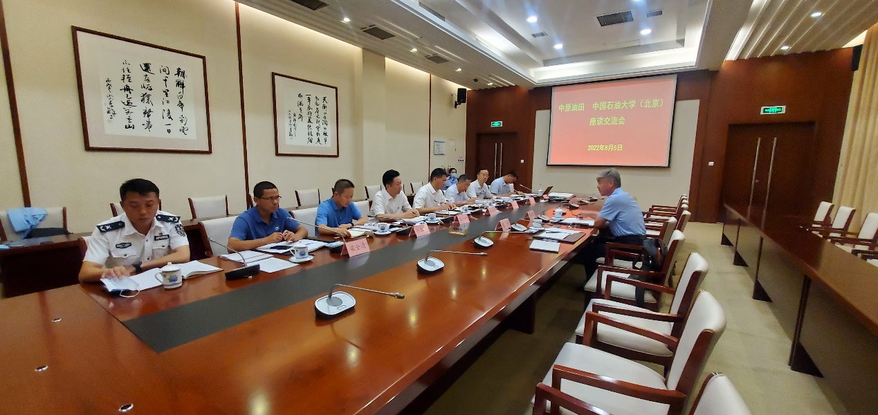 8月5日至7日,陈桂刚院长率教育培训中心赴中原油田及中原石油工程公司走访交流。中原油田党委组织部部长(人力资源部经理)陈东升,中原石油工程公司党委组织部部长(人力资源部经理)肖汉忠全程接待。校企就人才培训合作事宜进行了座谈交流,公司党委党校及技术部门的相关同志参加了座谈。座谈会后陈院长一行还参观了中原油田应急救援中心。