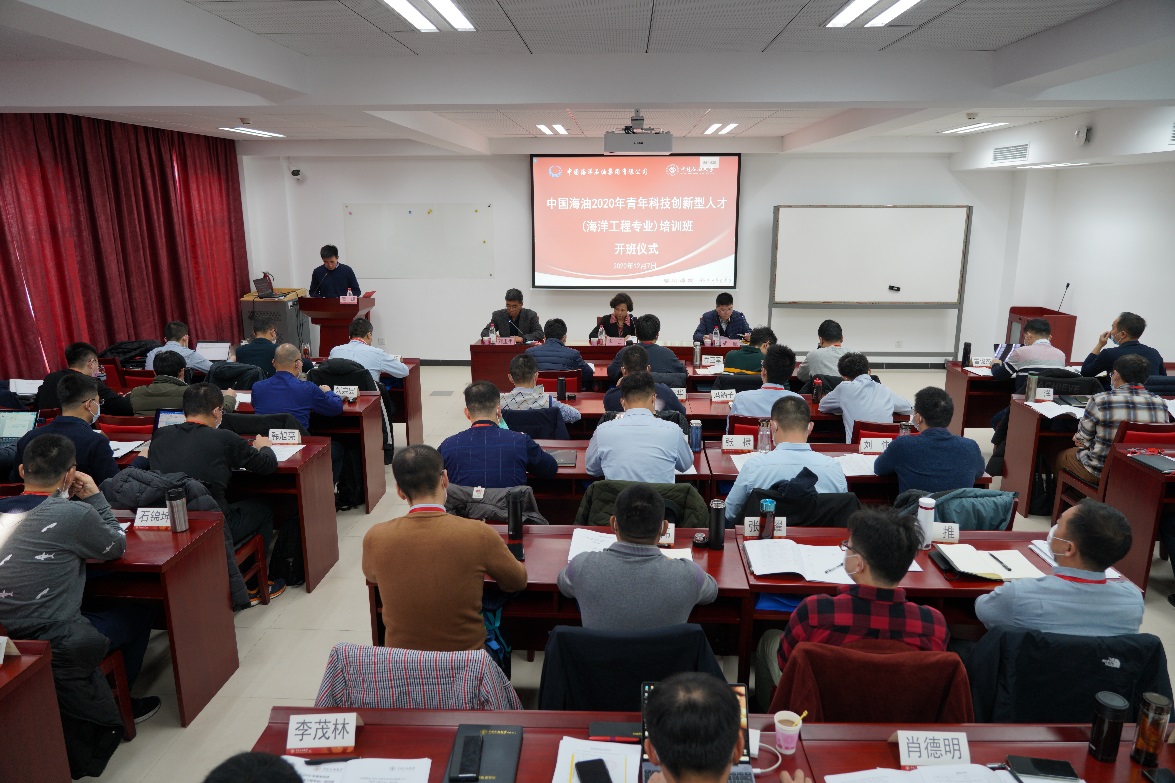 此次培训班是中国海洋石油集团有限公司2019届青年科技英才培训第二阶段的开始,时间跨度两年,以创新型人才培养为主题,以专业知识夯实和创新能力提升为主要内容。培训班共有来自中国海油的8家二级单位的44名学员参加,培训时间是12月7日-12月18日结束,教学时长12天,教学内容安排包括本专业的新技术、新理论、新方法课程,以及导师辅导、课题研究和小组研讨等,同时安排线上课程学习,包括习近平新时代中国特色社会主义思想、十九届五中全会精神、石油精神和大数据人工智能等,邀请了业内专家、学者教授前来授课。此次培训旨在通过校企合作加强新技术、新理论、新方法的系统培训,开拓青年科技英才的创新思维,提升创新能力,为公司高质量发展培养创新型、复合型科技人才。