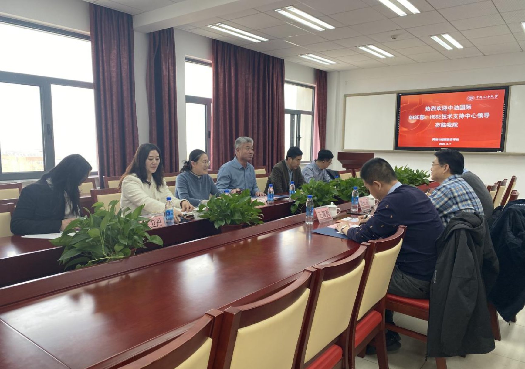 3月7日,中油国际质量健康安全环保部主任赵成斌一行应邀来我院交流访问,院长陈桂刚、副院长刘一凝、国际教育学院院长岳大力、副院长于东海及其相关部门人员出席座谈。