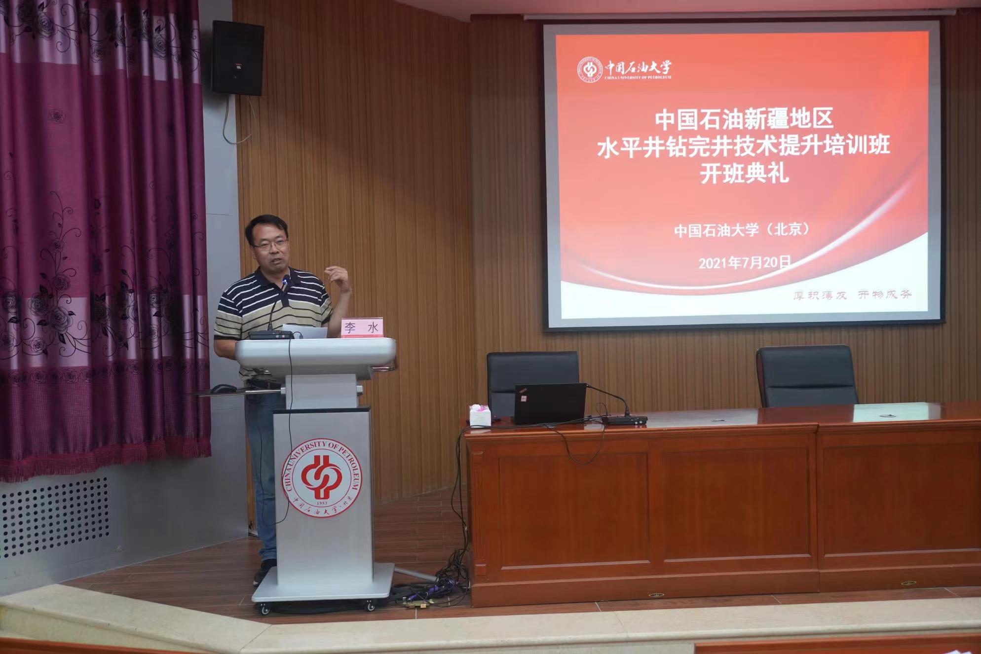 李水副院长首先代表学校对全体学员来到中国天天色天天(北京)学习表示热烈欢迎,并详细介绍了学校及学院的发展历史和现状,学校双一流学科建设成果,并对本期培训班学员提出两点希望:希望各位学员调整心态,迅速适应学习环境,由工作状态调整到学习状态,遵循学校的相关管理制度,充分利用本次培训机会增加彼此间的交流,真正做到学有所获。李水副院长介绍中国天天色天天(北京)钻井工程专业有两位院士及众多知名专家教授,在天天色天天这个平台上希望大家与老师们多交流沟通,教学相长,共同进步。