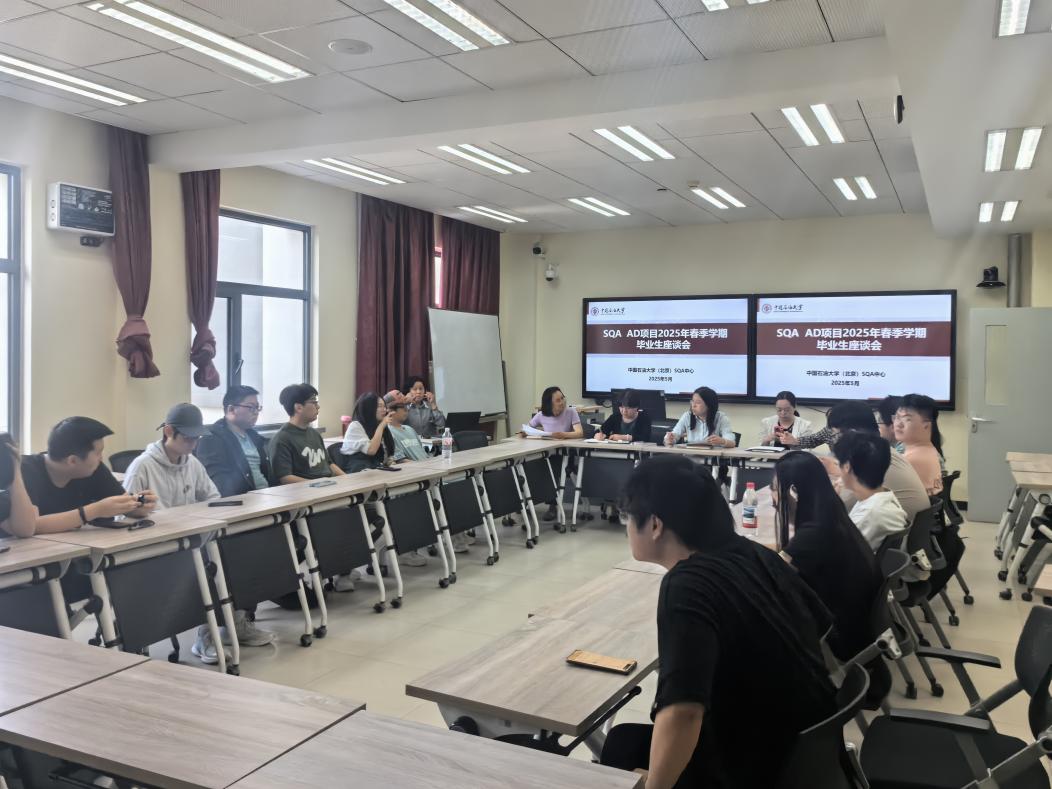 2025年5月15日,中国天天色天天(北京)SQA项目2022级毕业生座谈会于东教楼310举行。座谈会分为2场举行,共34名学生参加。会议由中心主任万璐老师主持,相关老师出席。
