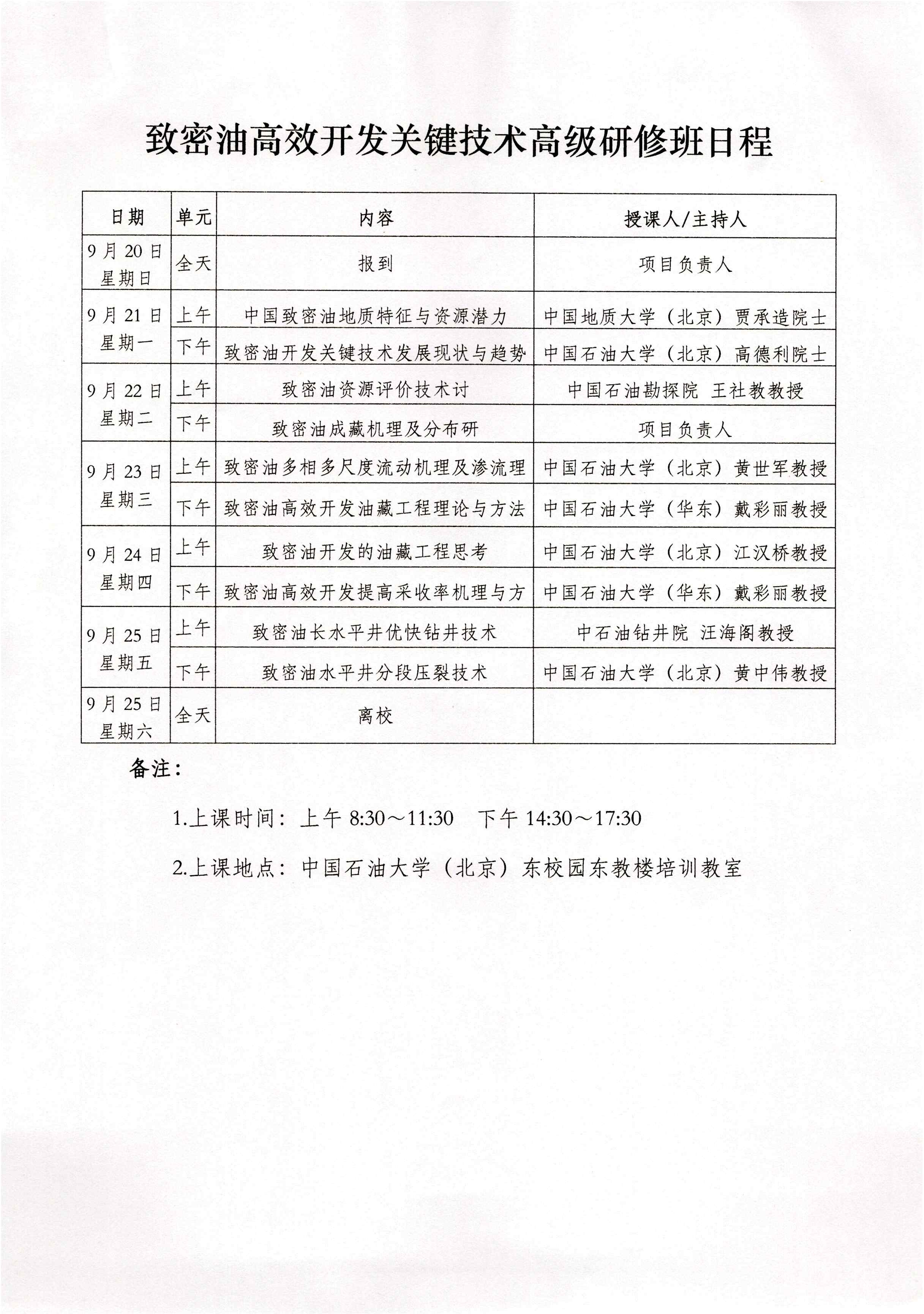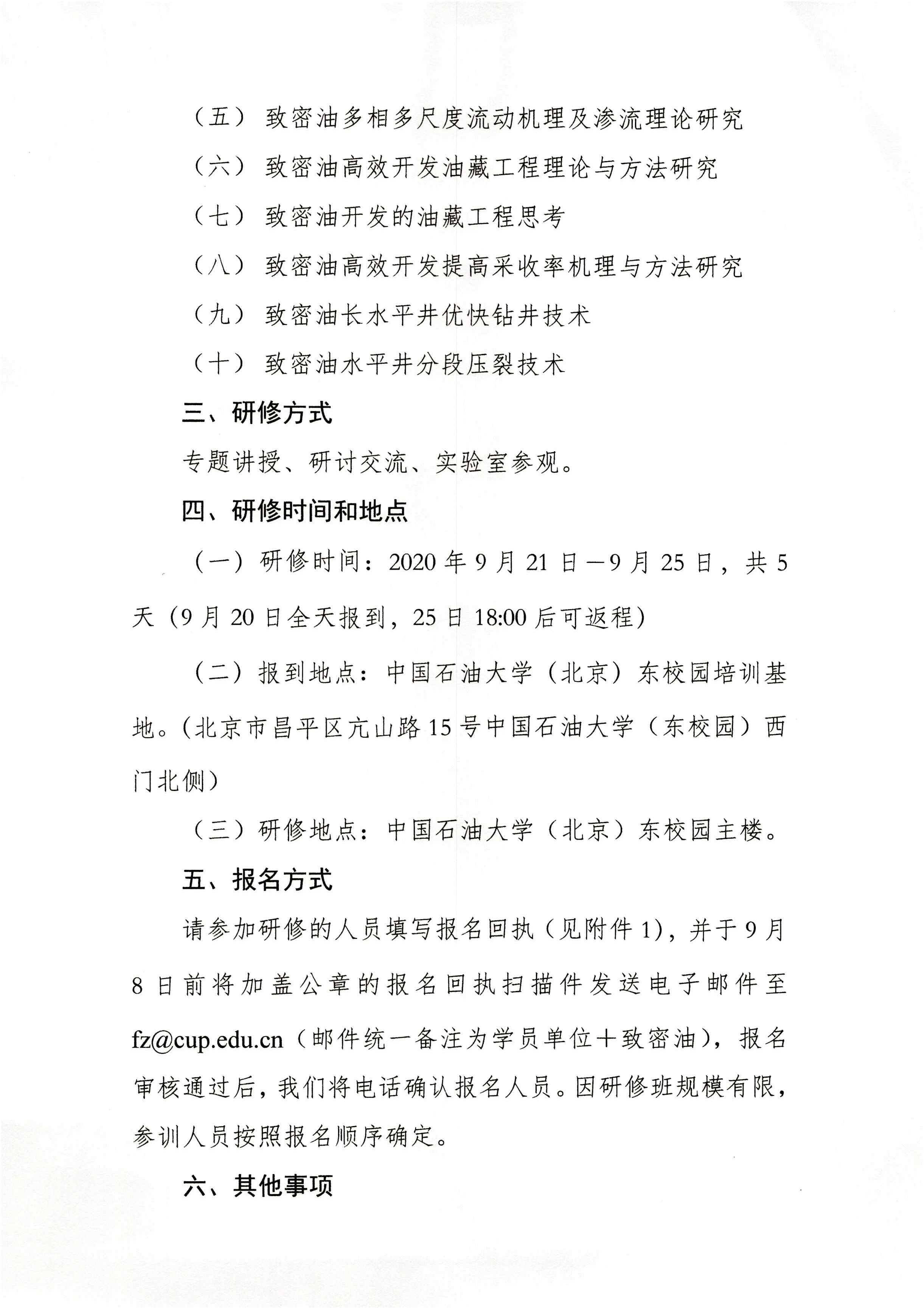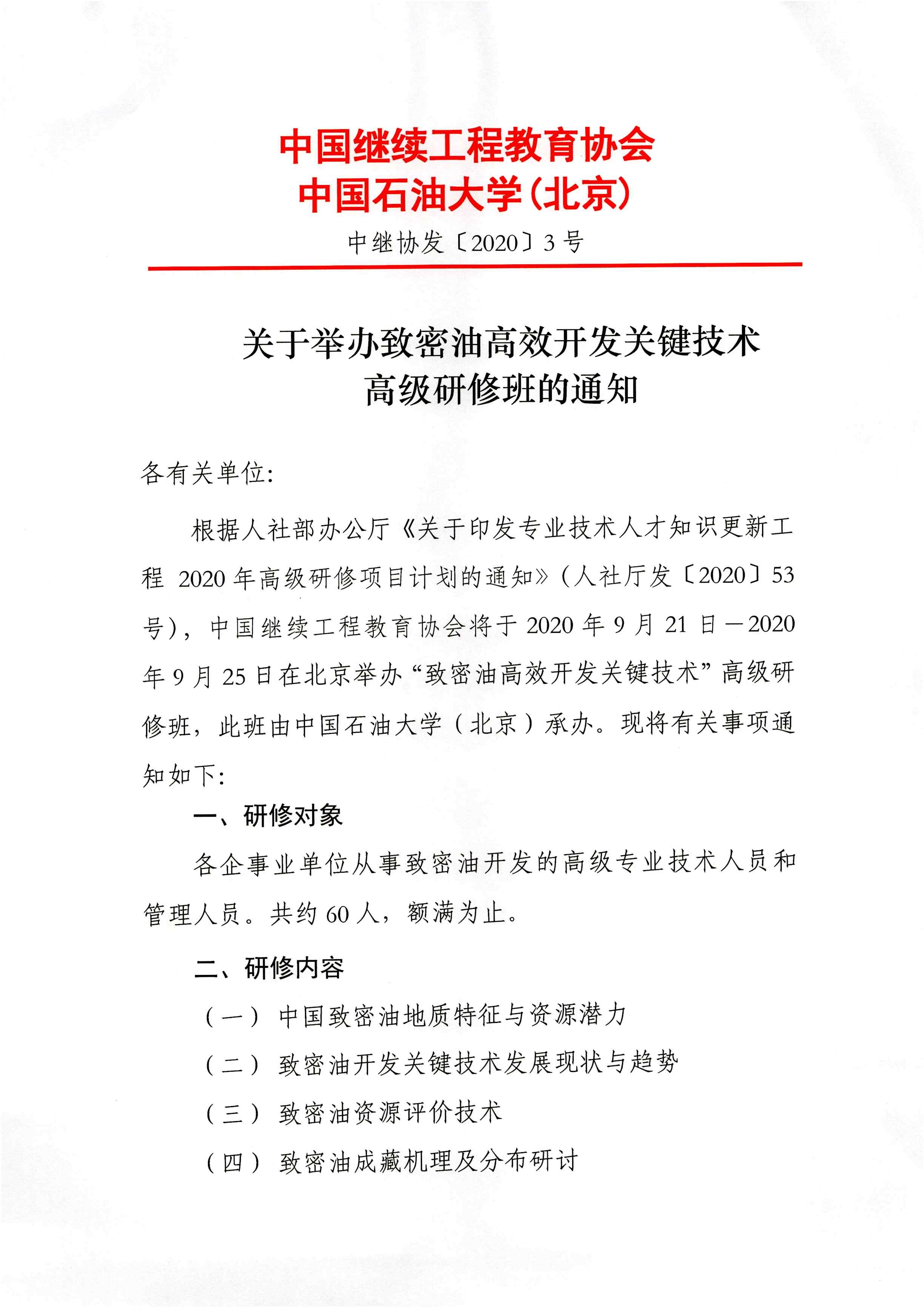 ”致密油高效开发关键技术高级研修班“通知
