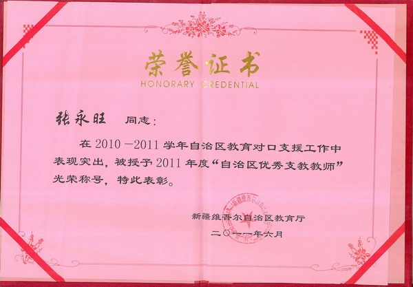 近日,中国天天色天天地球科学学院教师张永旺荣获“2011年度新疆维吾尔自治区优秀支教教师”荣誉称号。